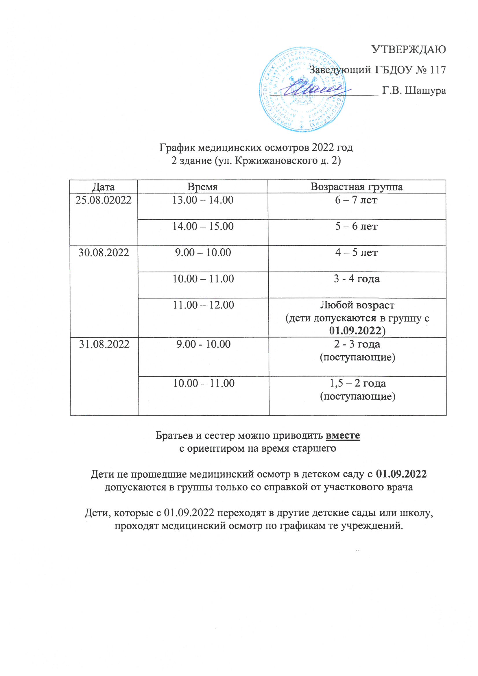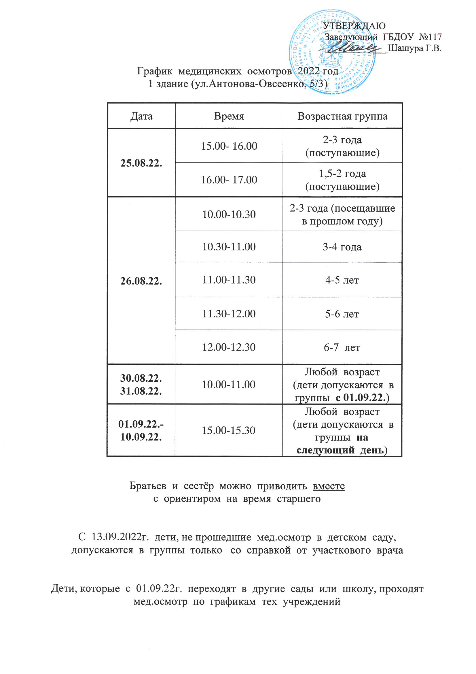Уважаемые родители (законные представители) предлагаем ознакомиться с графиком медицинских осмотров